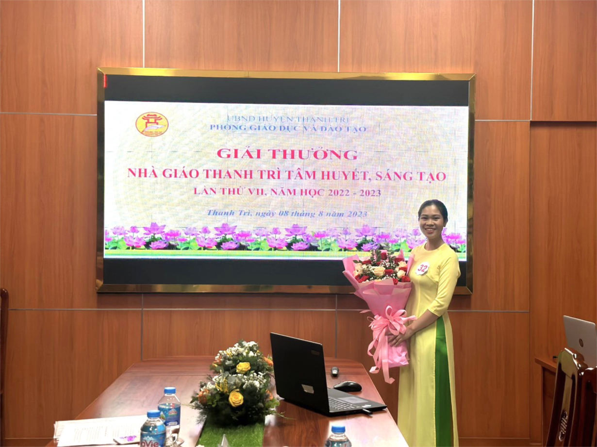 Sáng nay, ngày 08/8/2023, đại diện trường Mầm Non Yên Xá xã Tân Triều, cô giáo Trần Thị Thuý Hà đã tham dự, báo cáo SKKN của mình trước hội đồng "Giải thưởng nhà giáo Thanh Trì tâm huyết, sáng tạo năm học 2022-2023". Giải thưởng nhà giáo Thanh Trì tâm huyết sáng tạo năm học 2022-2023, nhằm động viên, khích lệ đội ngũ nhà giáo tự học tập, rèn luyện và có những sáng kiến, giải pháp mới để giải quyết các khó khăn trong dạy học, giáo dục học sinh. Xin chúc mừng cô giáo Thuý Hà và xin chúc mừng hội đồng sư phạm nhà trường!