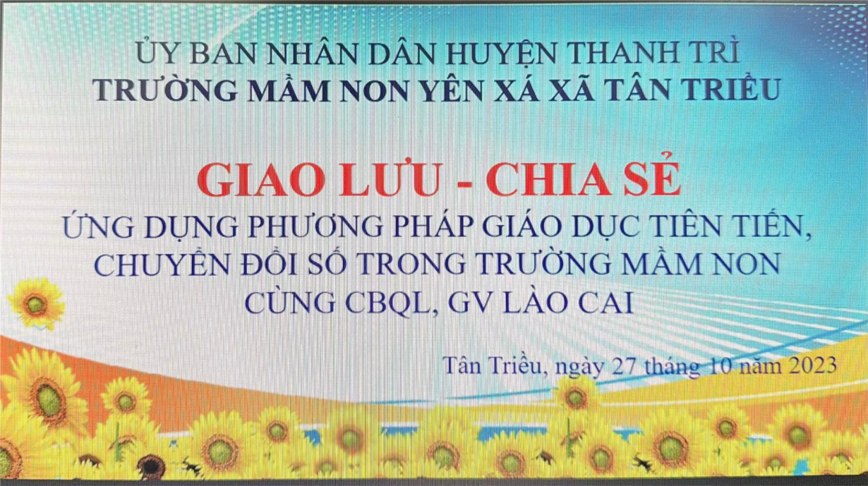 Được sự nhất trí của phòng giáo dục đào tạo huyện Thanh Trì, sáng ngày 27 tháng 10 năm 2023, trường mầm non Yên Xá xã Tân Triều đã có buổi giao lưu – chia sẻ ứng dụng phương pháp giáo dục tiên tiến, chuyển đổi số trong trường mầm non cùng CBQL – GV Lào Cai.