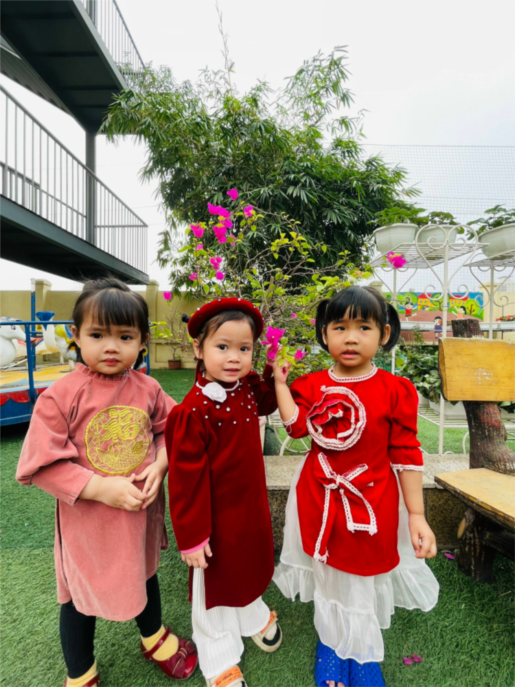Hưởng ứng tuần lễ áo dài của CBGVNV, học sinh trường mầm non Yên Xá xã Tân Triều